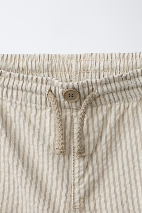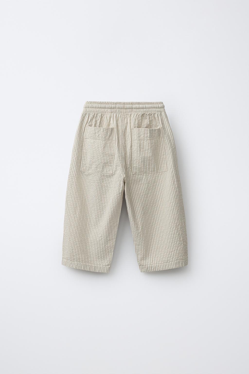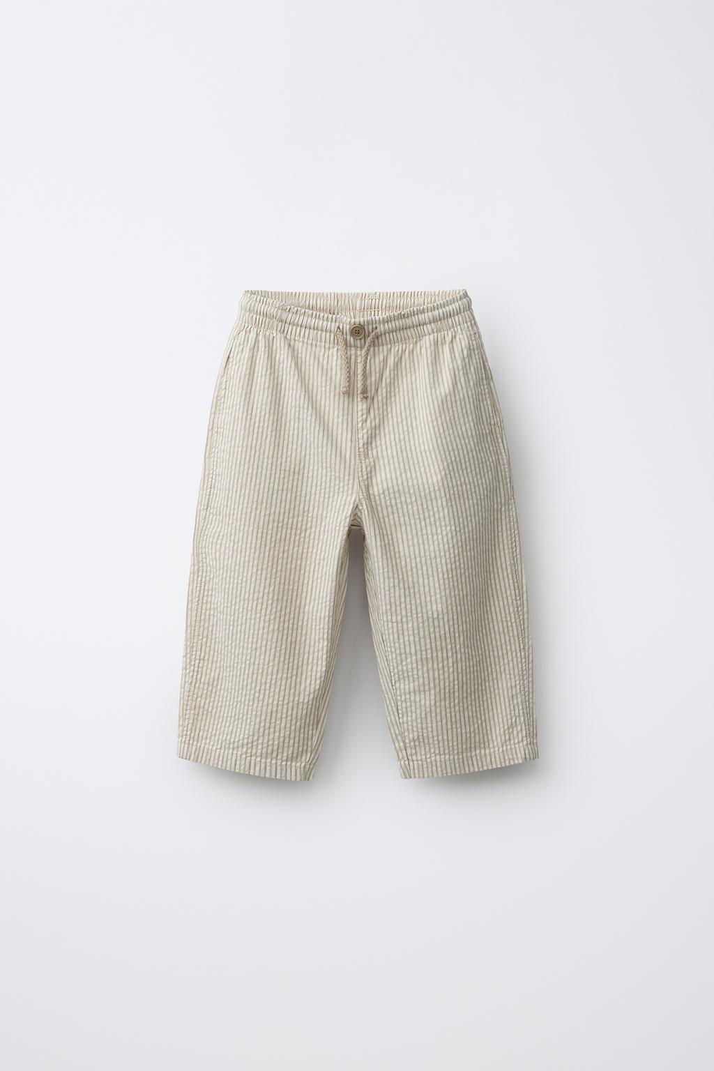 ZARA БРЮКИ SEERSUCKER В ПОЛОСКУ, СВЕТЛО-БЕЖЕВЫЙ