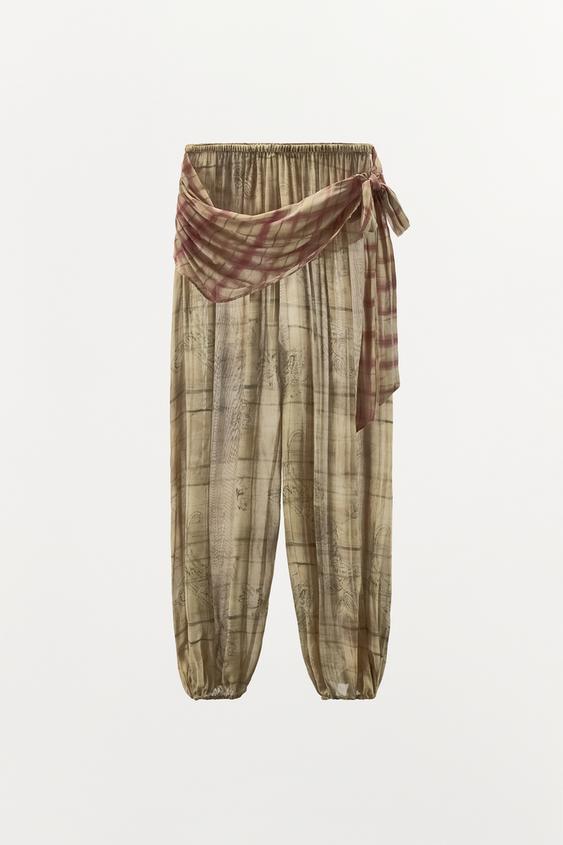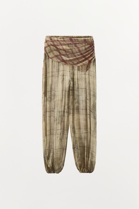 ZARA БРЮКИ-ШАРЫ С ПРИНТОМ «ПЛАТОК», РАЗНОЦВЕТНЫЙ