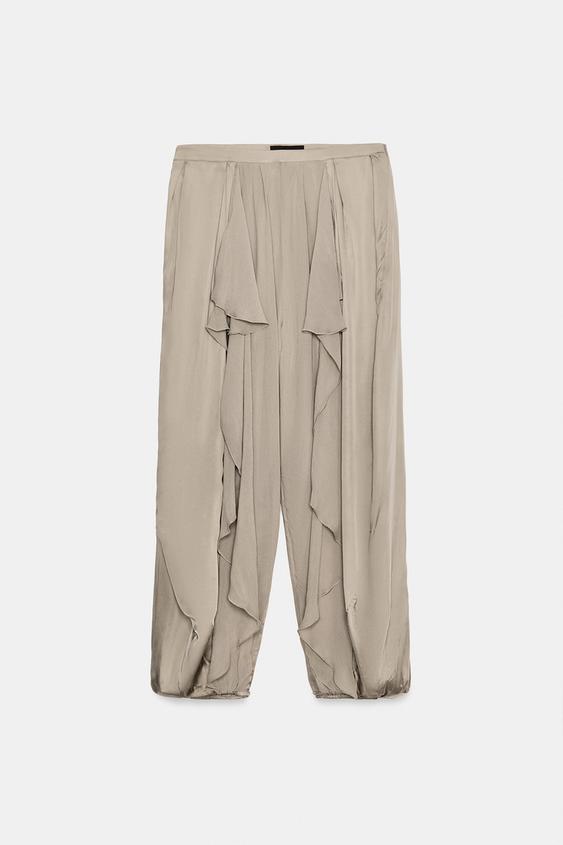ZARA БРЮКИ-ШАРЫ С ВОЛАНАМИ — ZW COLLECTION, СЕРО-КОРИЧНЕВЫЙ