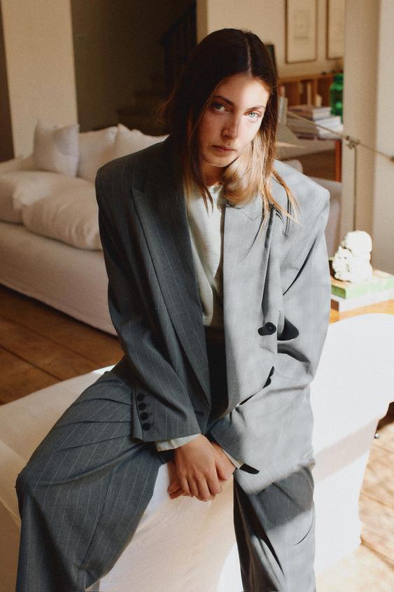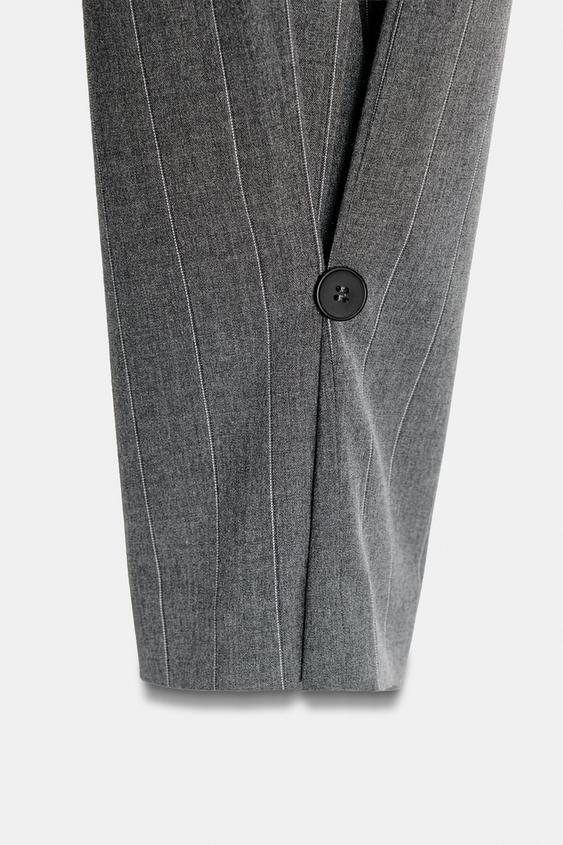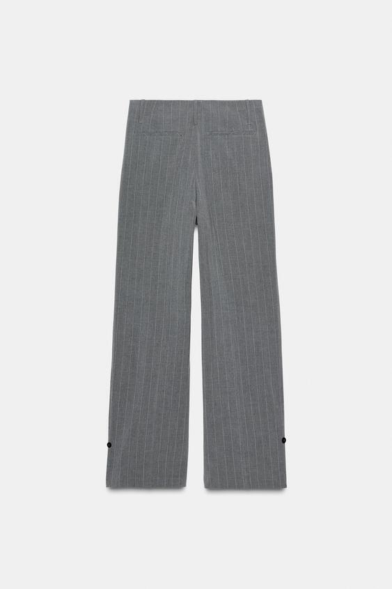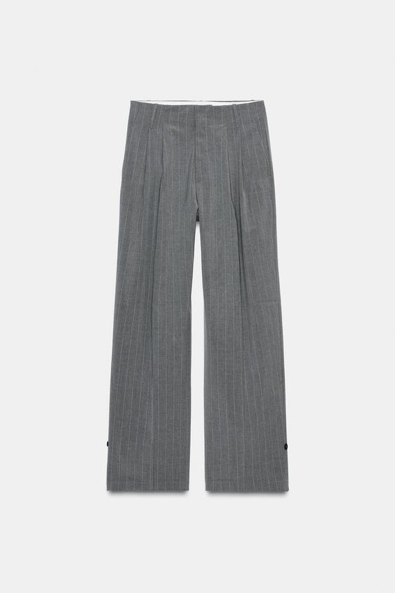 ZARA БРЮКИ СО СКЛАДКАМИ И ПУГОВИЦАМИ СНИЗУ, СЕРЫЙ/СИНИЙ
