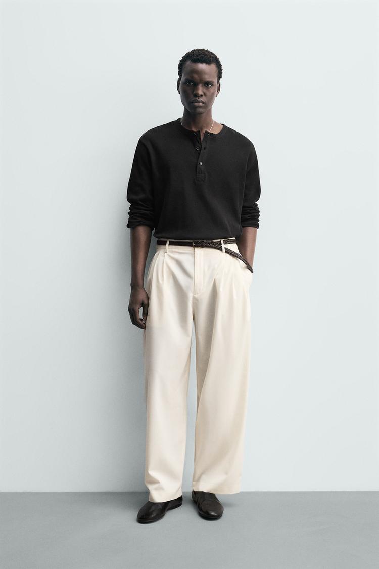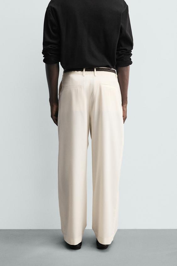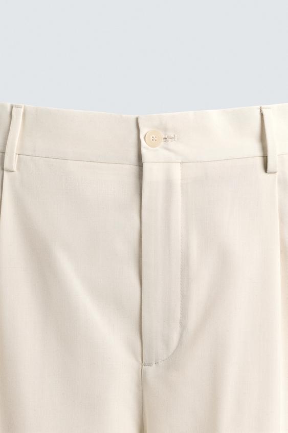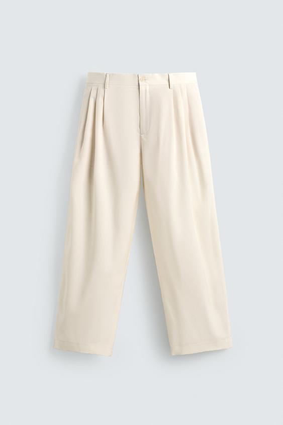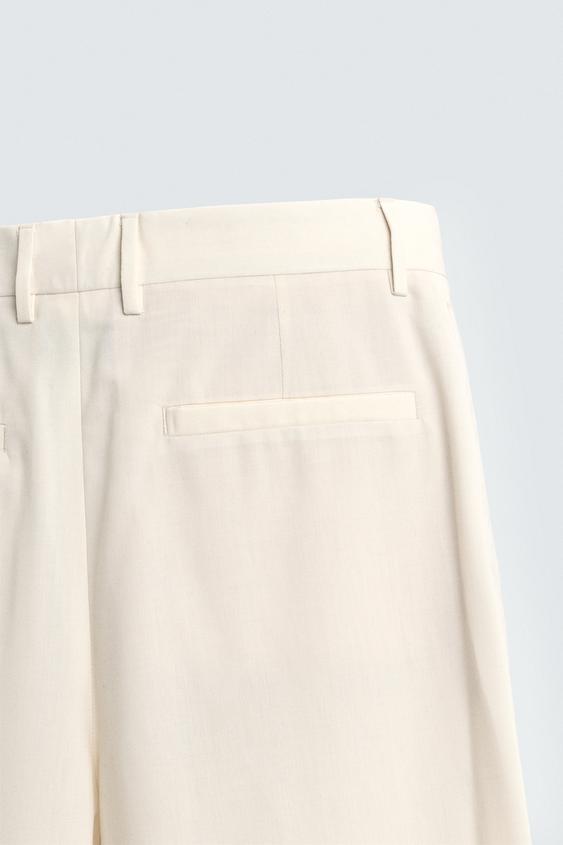 ZARA БРЮКИ СО СКЛАДКАМИ И ШЕРСТЬЮ, ЭКРЮ