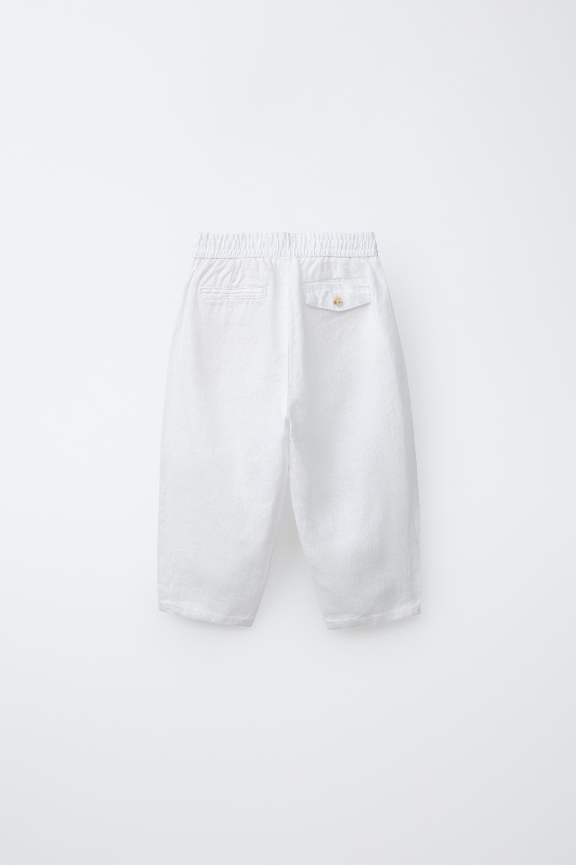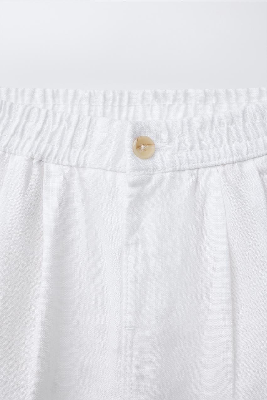 ZARA БРЮКИ СО СКЛАДКАМИ ИЗ 100% ЛЬНА, БЕЛЫЙ