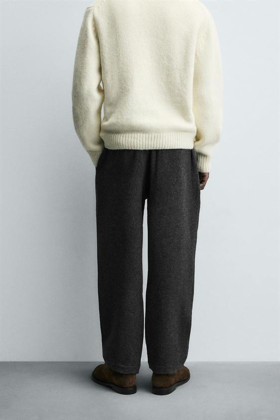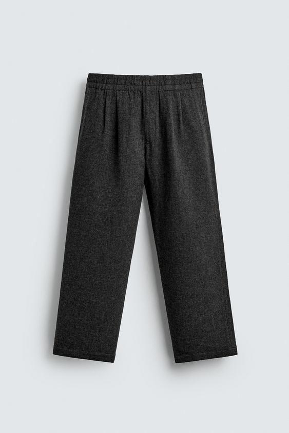 ZARA БРЮКИ СО СКЛАДКАМИ ИЗ СМЕСОВОЙ ШЕРСТИ, СЕРЫЙ