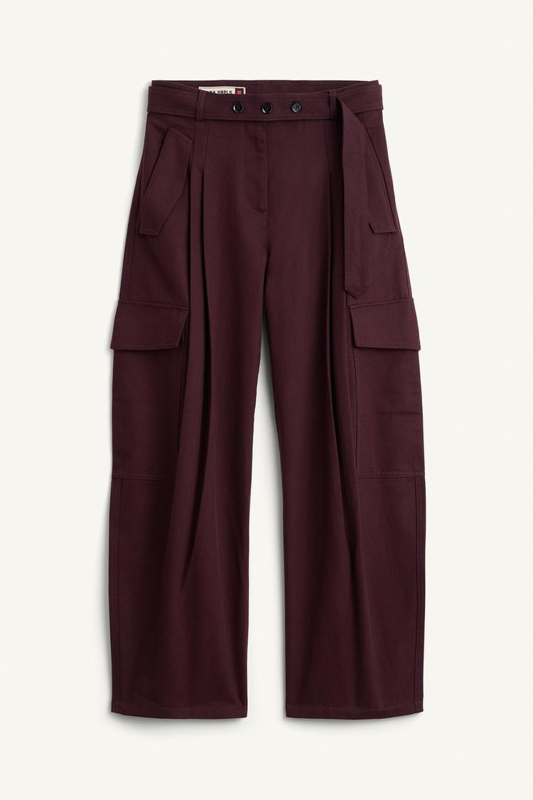 ZARA БРЮКИ СО СРЕДНЕЙ ПОСАДКОЙ, БАКЛАЖАННЫЙ