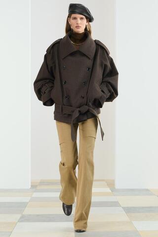 Брюки средней посадки из смеси хлопковых нитей. Карманы по бокам. Широкие брюки. Застежка на молнии и пуговицы спереди.
