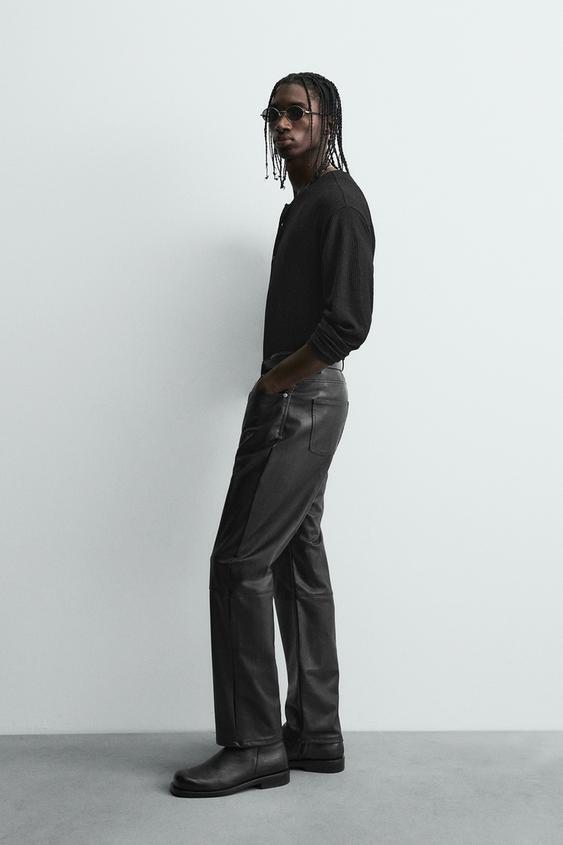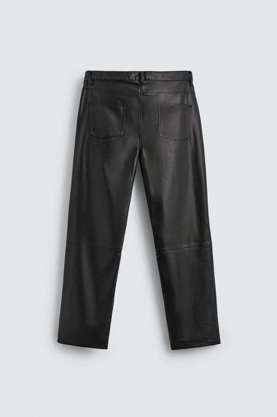 ZARA БРЮКИ STRAIGHT FIT ИЗ ИСКУССТВЕННОЙ КОЖИ, ЧЕРНЫЙ