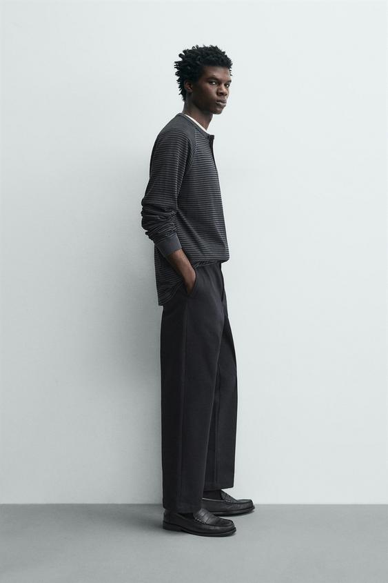 ZARA БРЮКИ STRAIGHT FIT ИЗ РЕЛЬЕФНОЙ ТКАНИ, МОРСКОЙ СИНИЙ