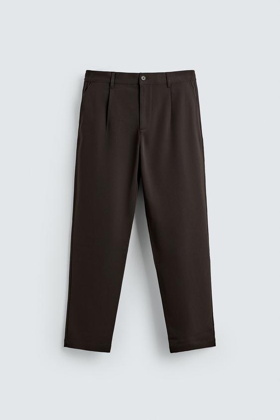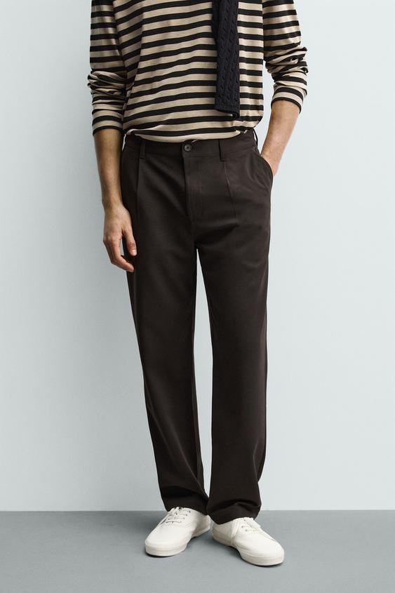 ZARA БРЮКИ STRAIGHT FIT КОМФОРТ, КОРИЧНЕВЫЙ