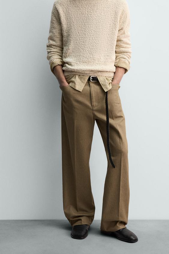 ZARA БРЮКИ STRAIGHT FIT LIMITED EDITION, БЕЖЕВЫЙ