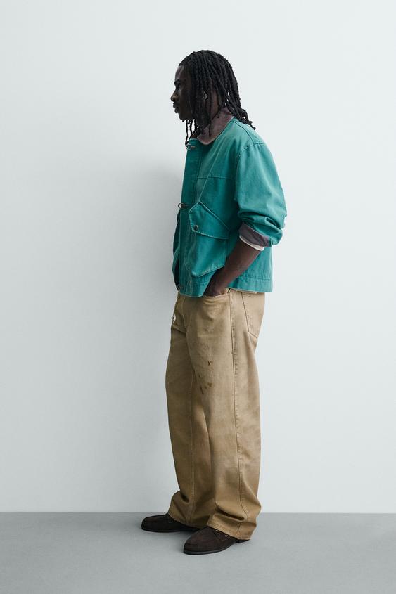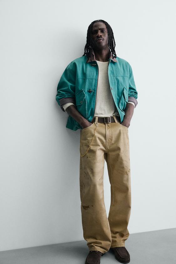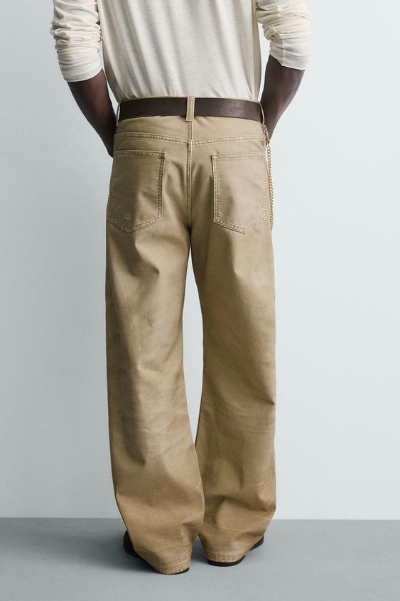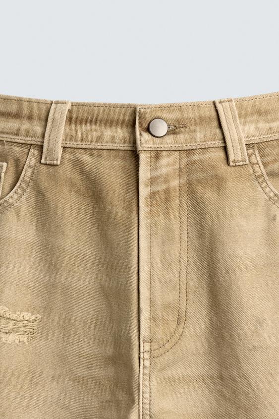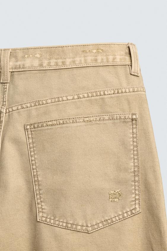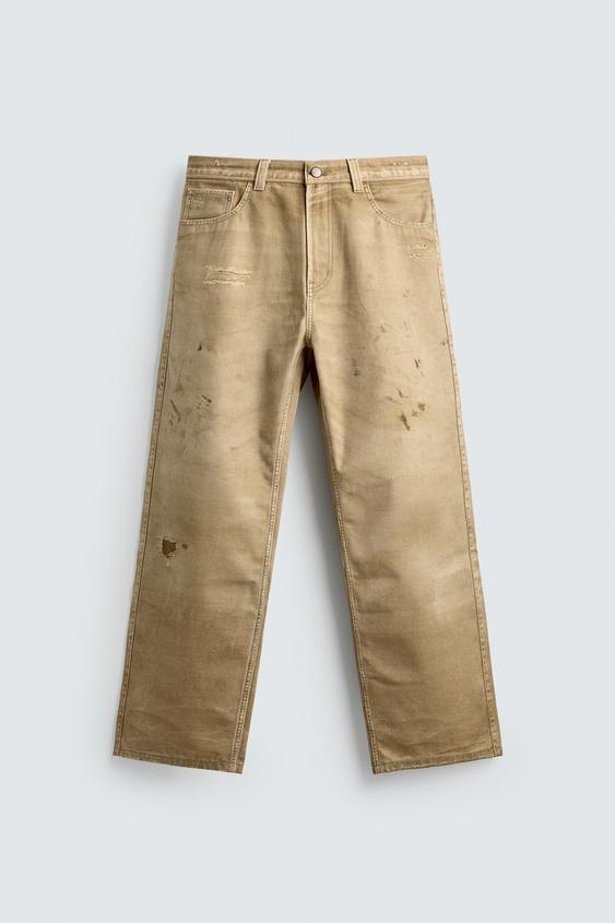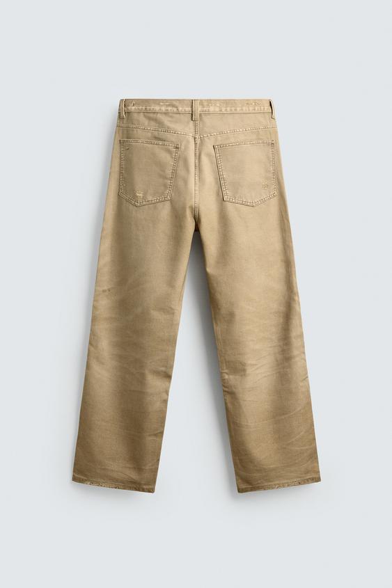 ZARA БРЮКИ STRAIGHT FIT С ЭФФЕКТОМ ПОТЕРТОСТИ, РЫЖЕВАТО-КОРИЧНЕВЫЙ