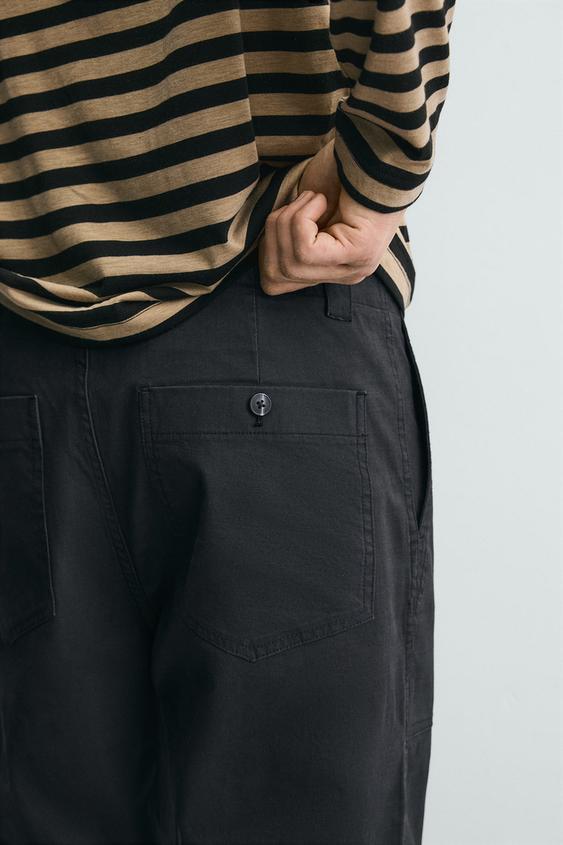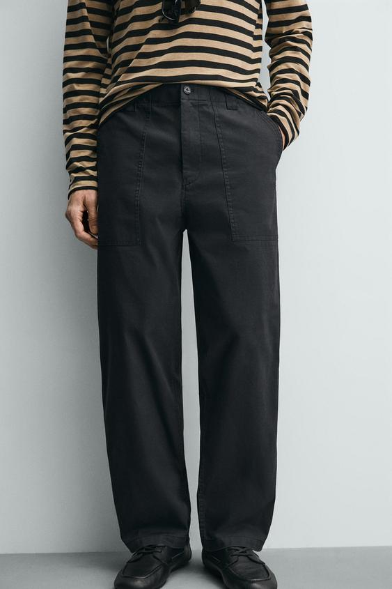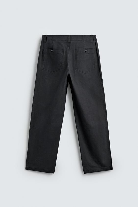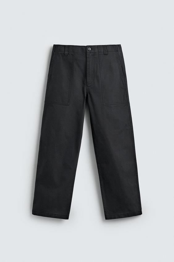ZARA БРЮКИ STRAIGHT FIT С ЭФФЕКТОМ ПОТЕРТОСТИ, СТАЛЬНОЙ
