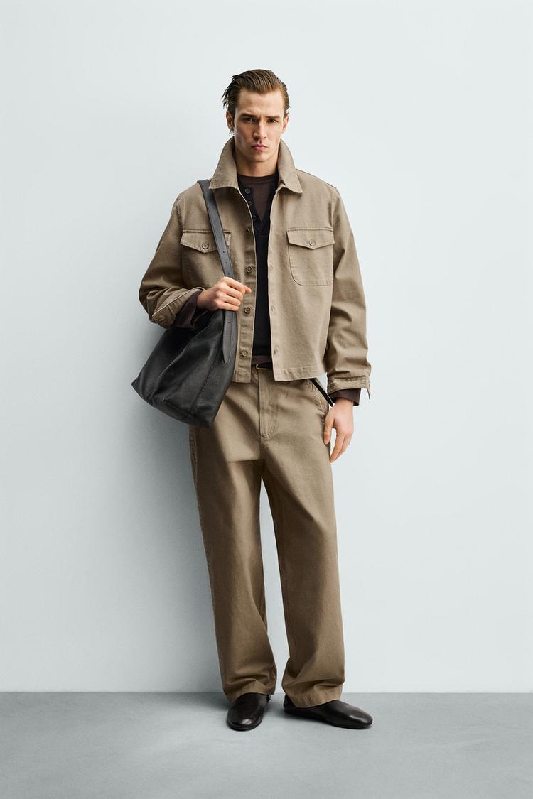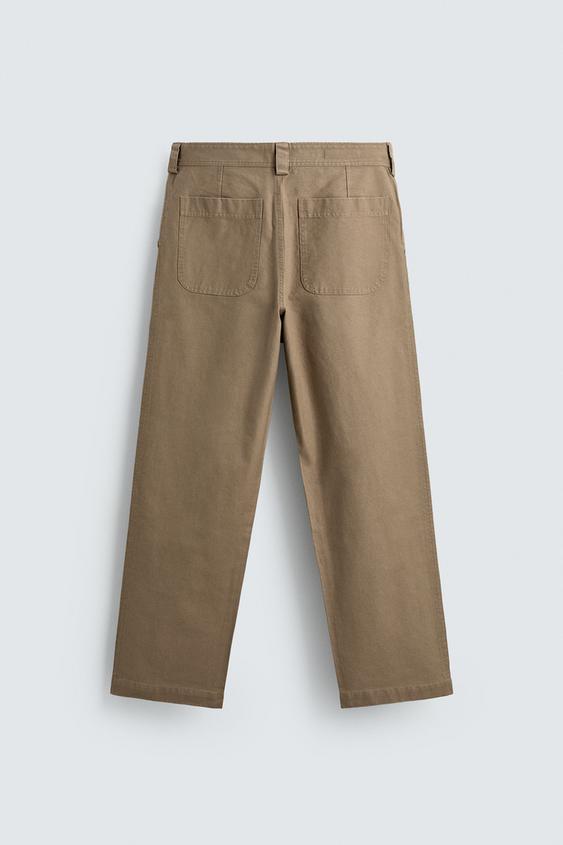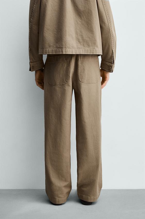 ZARA БРЮКИ STRAIGHT FIT С ВЫШИВКОЙ, РЫЖЕВАТО-КОРИЧНЕВЫЙ МЕЛАНЖ