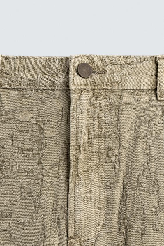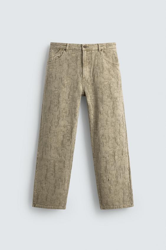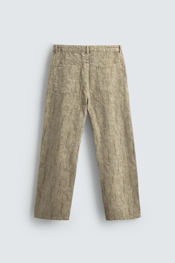 ZARA БРЮКИ STRAIGHT FIT ЖАККАРД, ХАКИ