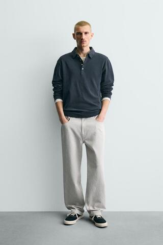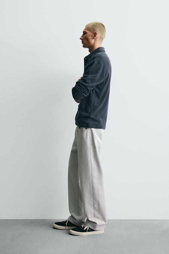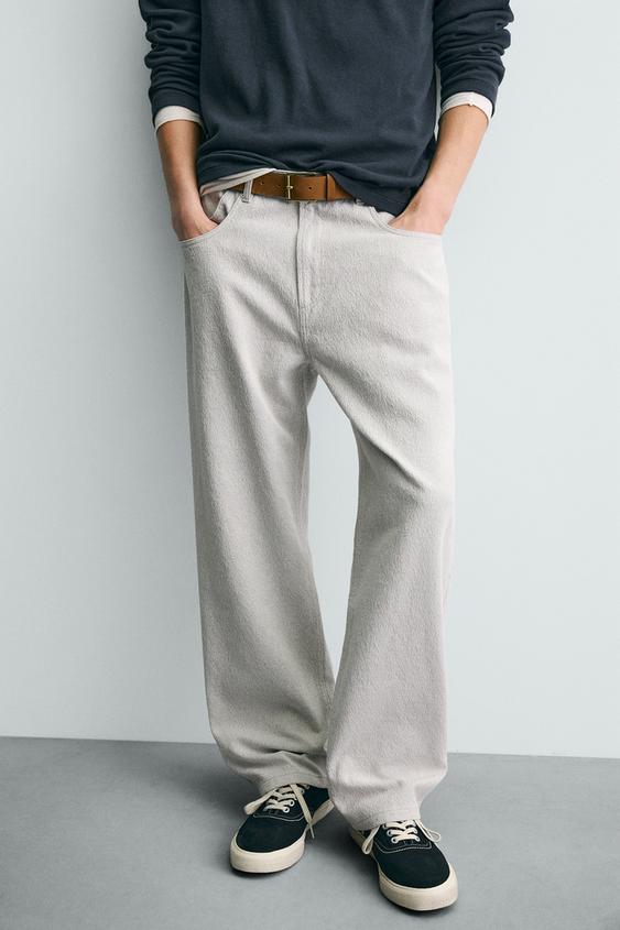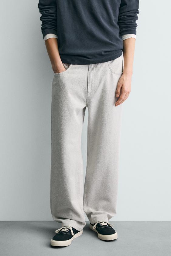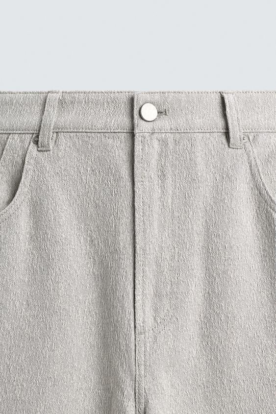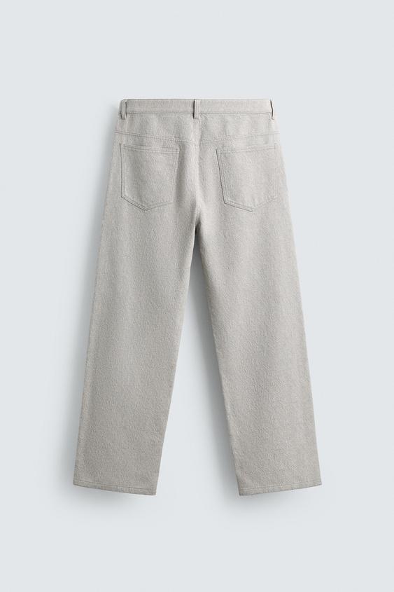 ZARA БРЮКИ STRAIGHT FIT ЖАККАРД, СЕРЫЙ