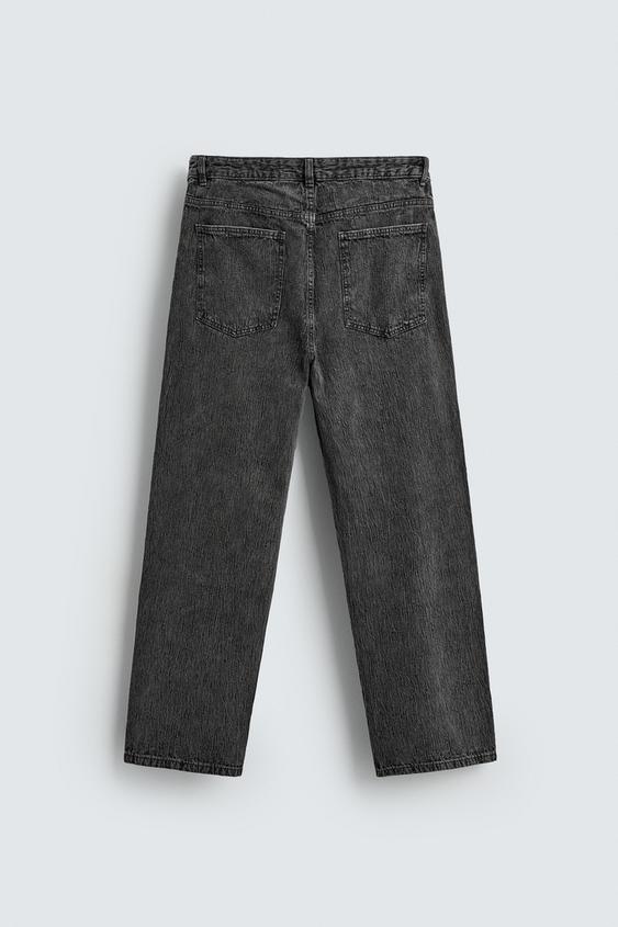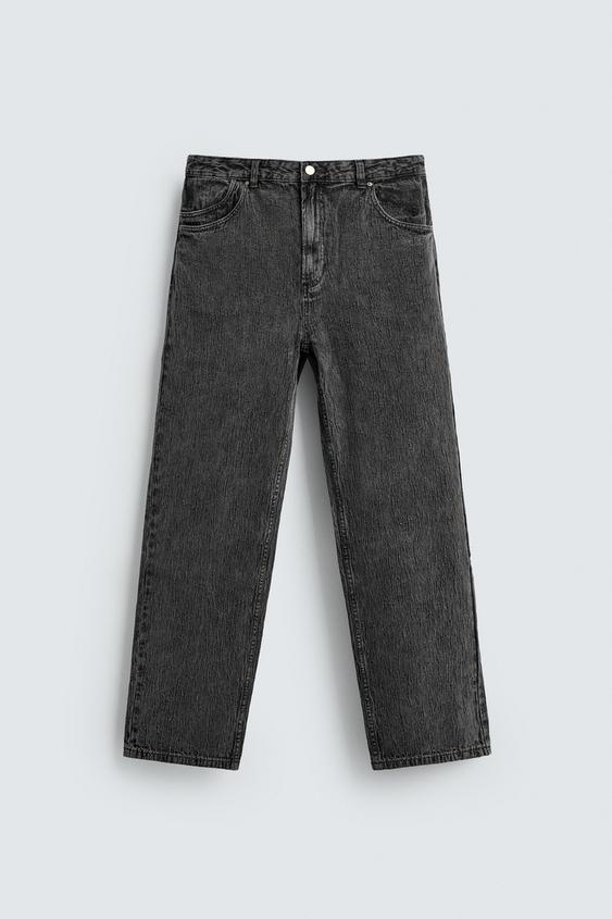 ZARA БРЮКИ STRAIGHT FIT ЖАККАРД, ТЕМНО-СЕРЫЙ
