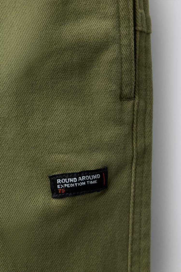 Брюки прямого кроя с эластичным поясом и скрытыми регулируемыми шнурками спереди. Передние карманы и накладные карманы сзади. Нашивка на штанине.