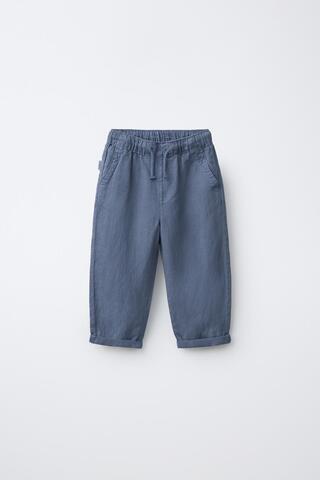 ZARA БРЮКИ СТРУЯЩЕГОСЯ КРОЯ ИЗ СМЕСОВОГО ЛЬНА, СИНИЙ