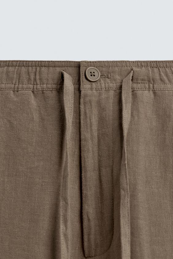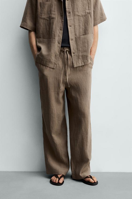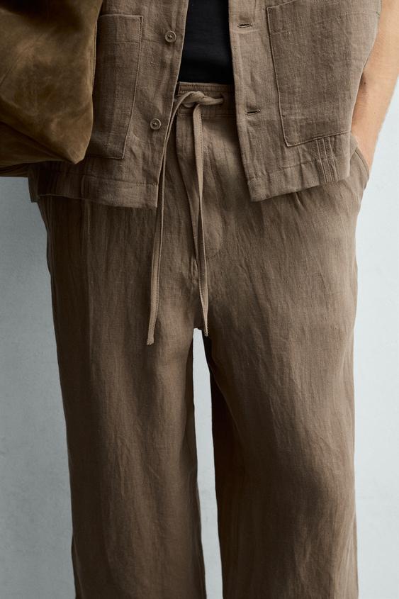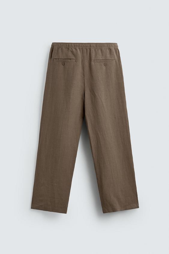 ZARA БРЮКИ СВОБОДНОГО КРОЯ ИЗ 100% ЛЬНА, СЕРО-КОРИЧНЕВЫЙ
