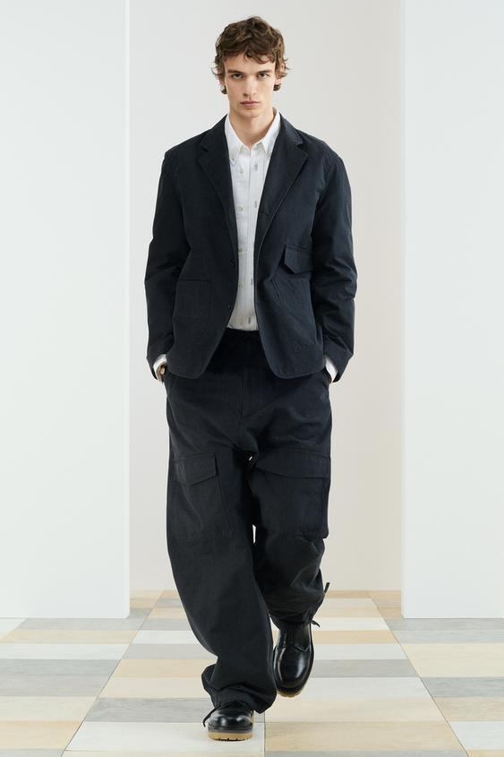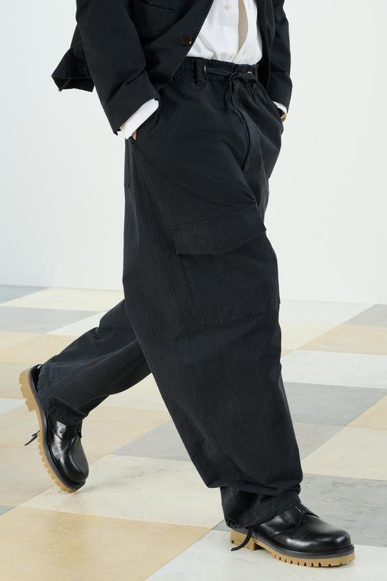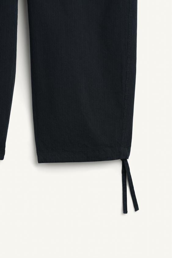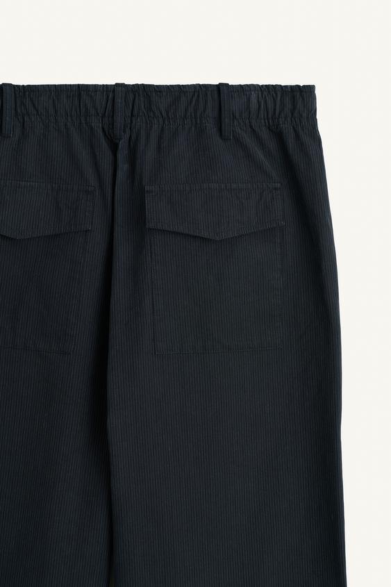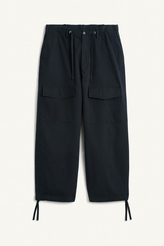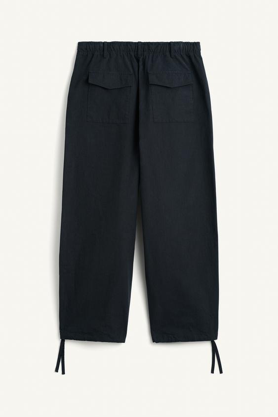 ZARA БРЮКИ СВОБОДНОГО КРОЯ ИЗ ХЛОПЧАТОБУМАЖНОЙ ТКАНИ, ТЕМНО-СИНИЙ