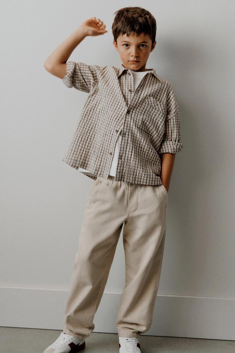 ZARA БРЮКИ СВОБОДНОГО КРОЯ ИЗ ТВИЛА, ЭКРЮ