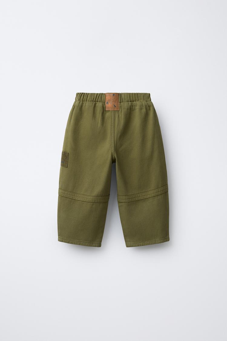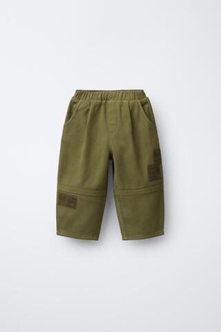 ZARA БРЮКИ СВОБОДНОГО КРОЯ ИЗ ТВИЛА С НАШИВКАМИ, ХАКИ