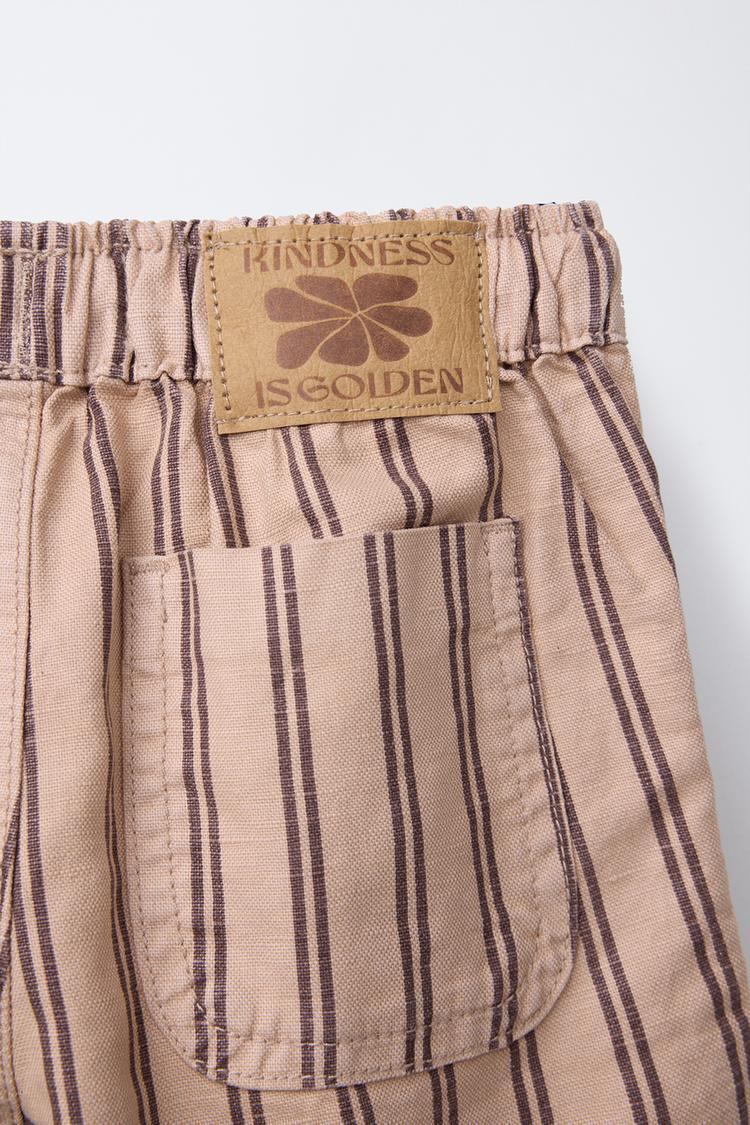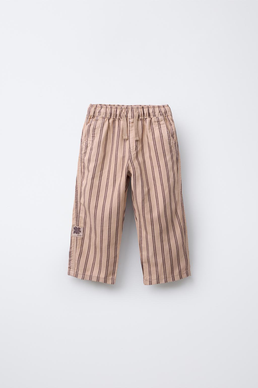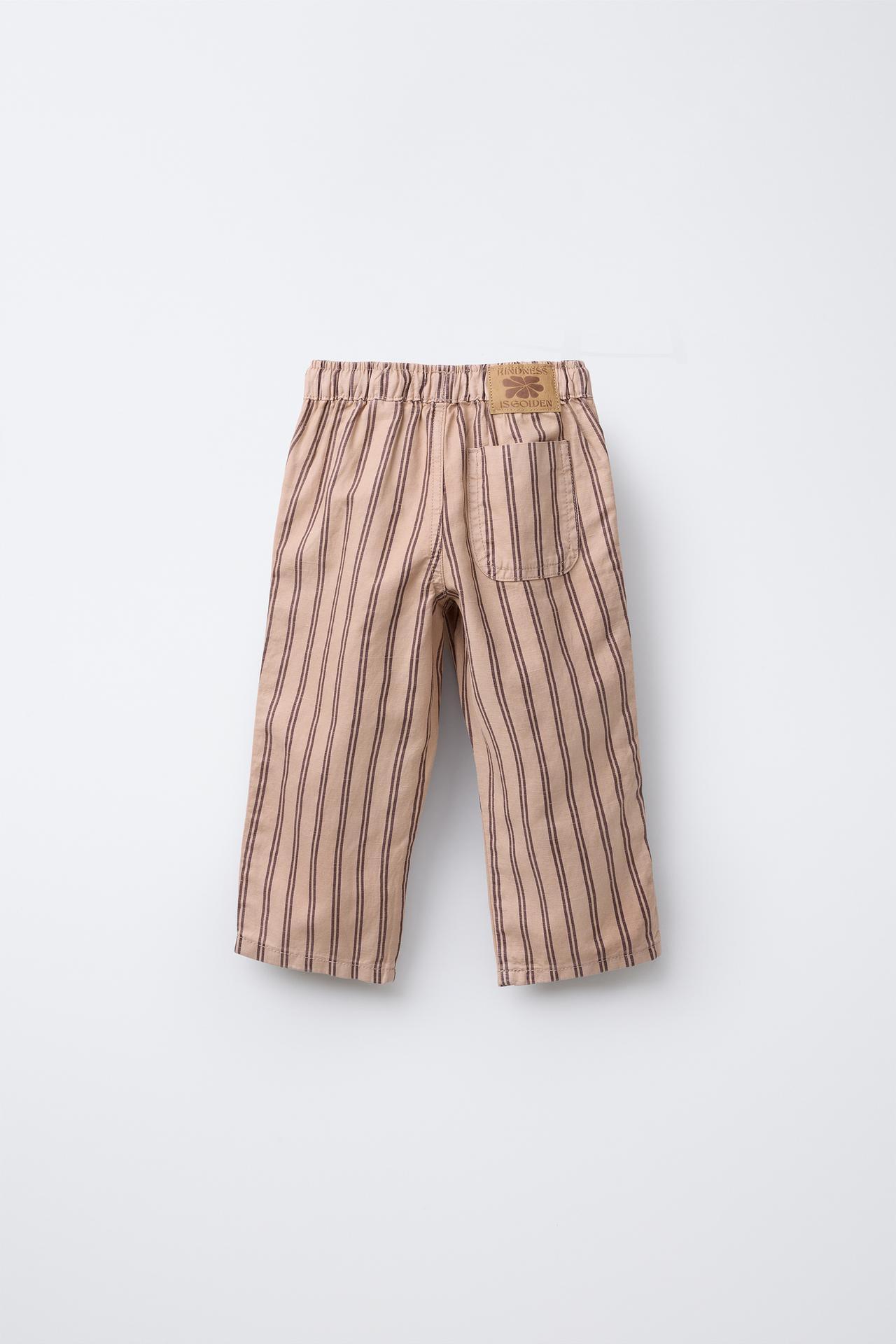 ZARA БРЮКИ СВОБОДНОГО КРОЯ ИЗ ТВИЛА В ПОЛОСКУ, СЕРО-КОРИЧНЕВЫЙ