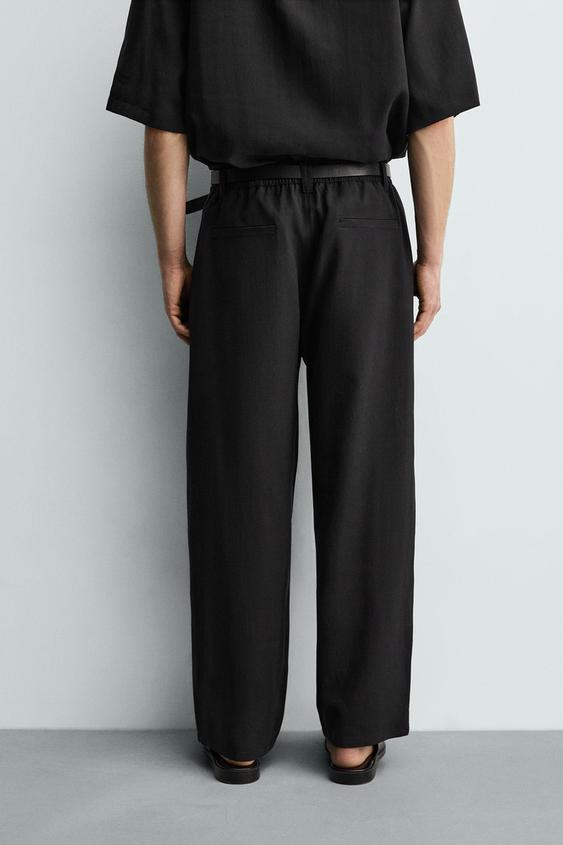 ZARA БРЮКИ СВОБОДНОГО КРОЯ СО СКЛАДКАМИ, ЧЕРНЫЙ