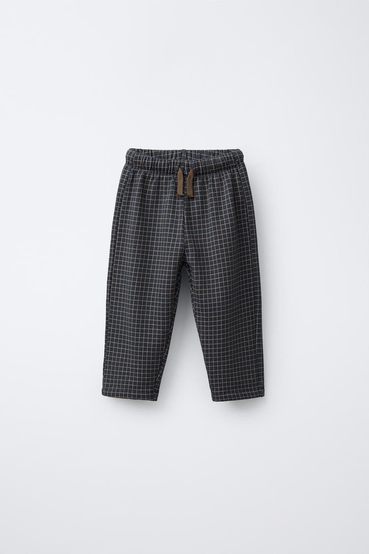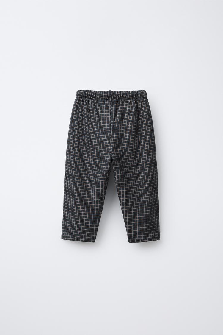 Брюки с эластичным поясом и регулируемыми шнурками спереди. Внутренняя сторона с начесом, теплая и мягкая. Ткань 100% хлопок. Принт в клетку.