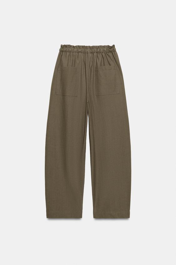 ZARA БРЮКИ TAPERED С ЭЛАСТИЧНЫМ ПОЯСОМ, ХАКИ