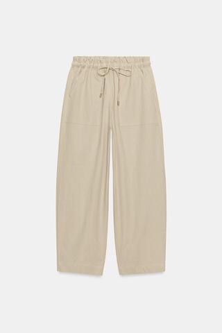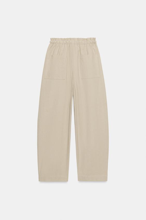 ZARA БРЮКИ TAPERED С ЭЛАСТИЧНЫМ ПОЯСОМ, СВЕТЛЫЙ ЖЕЛТО-КОРИЧНЕВЫЙ