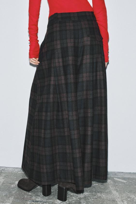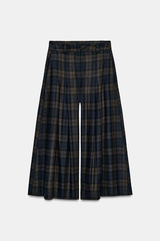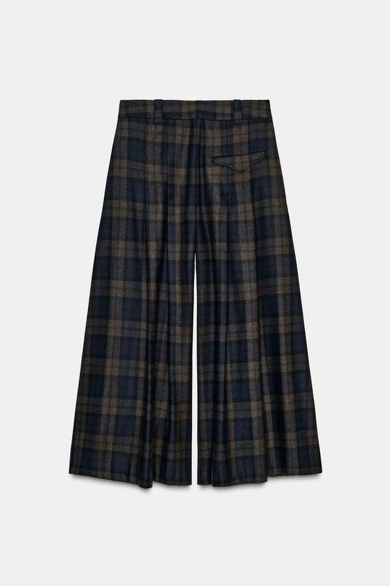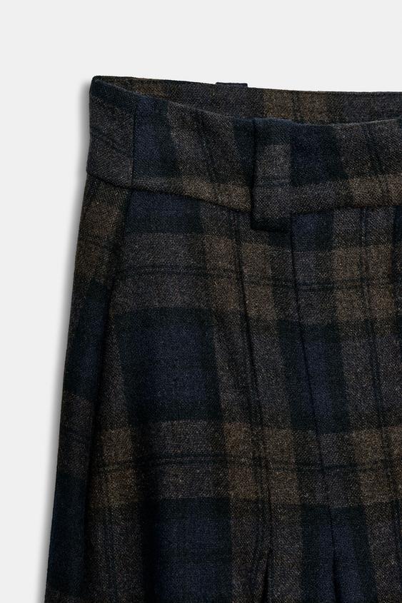 ZARA БРЮКИ В КЛЕТКУ ИЗ СМЕСОВОЙ ШЕРСТИ — ZW COLLECTION, КОРИЧНЕВЫЙ/СИНИЙ