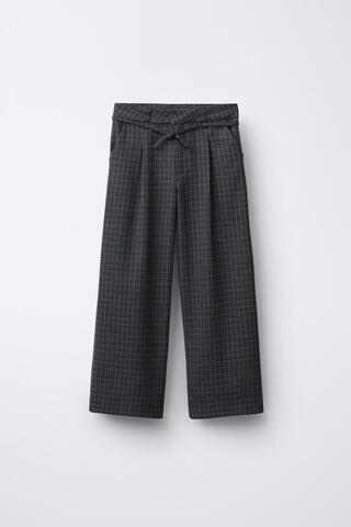 ZARA БРЮКИ В КЛЕТКУ НА ШНУРКЕ, СИНИЙ