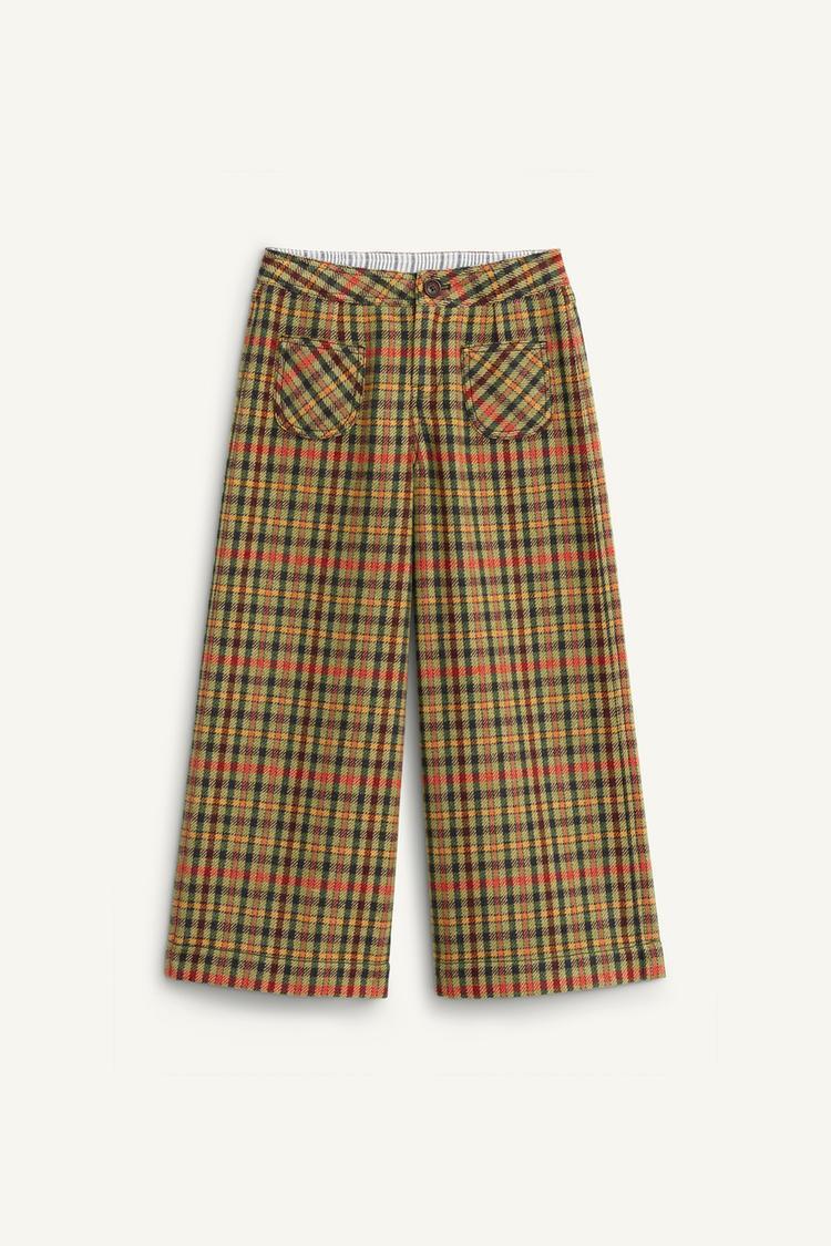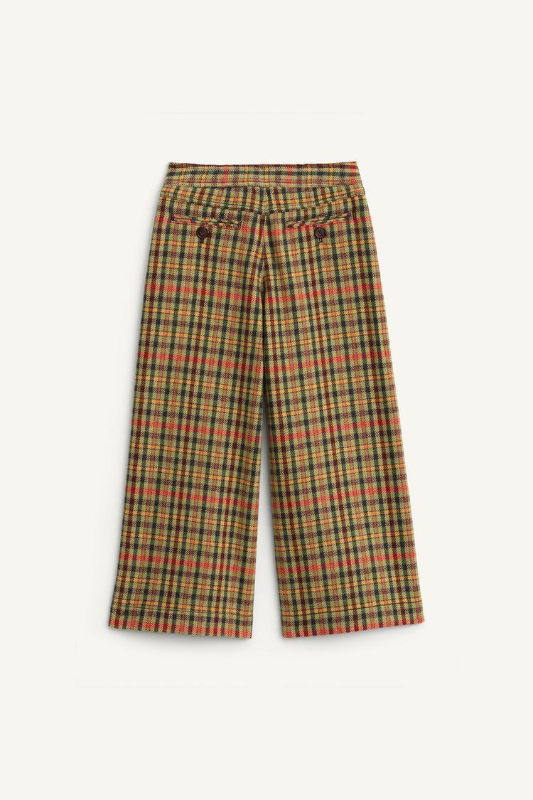 Брюки с регулируемым потайным поясом и пуговицами спереди. С передними накладными карманами и задними карманами с клапанами. В клетку.