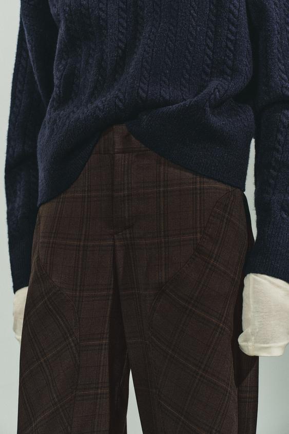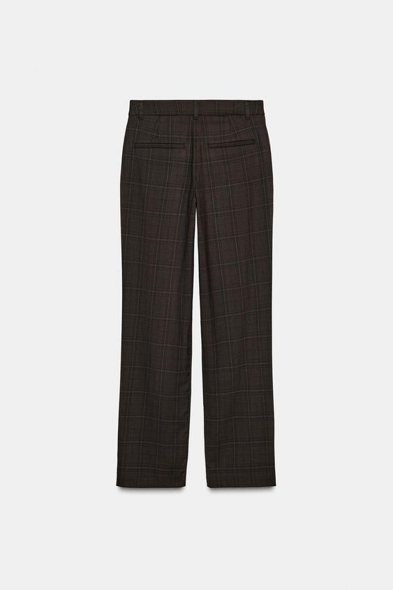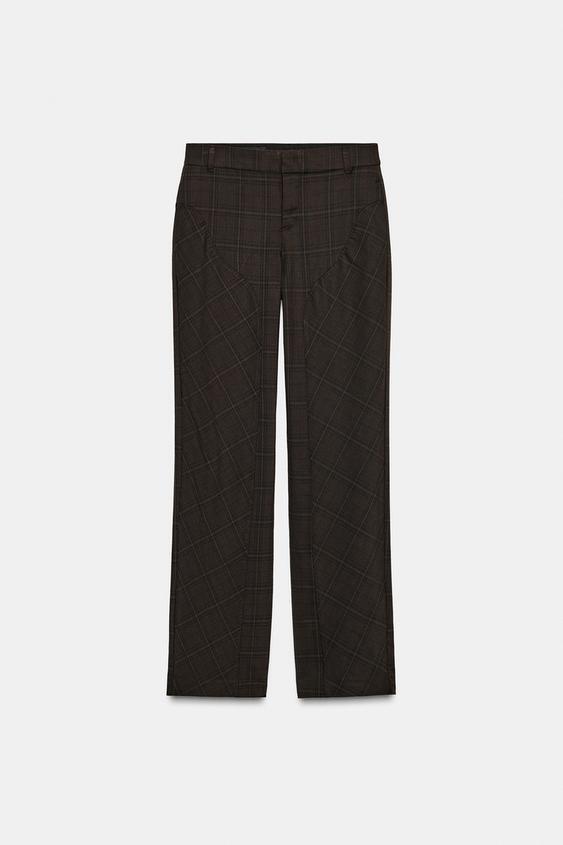 ZARA БРЮКИ В КЛЕТКУ С ДЕКОРАТИВНЫМИ ШВАМИ, ХАКИ