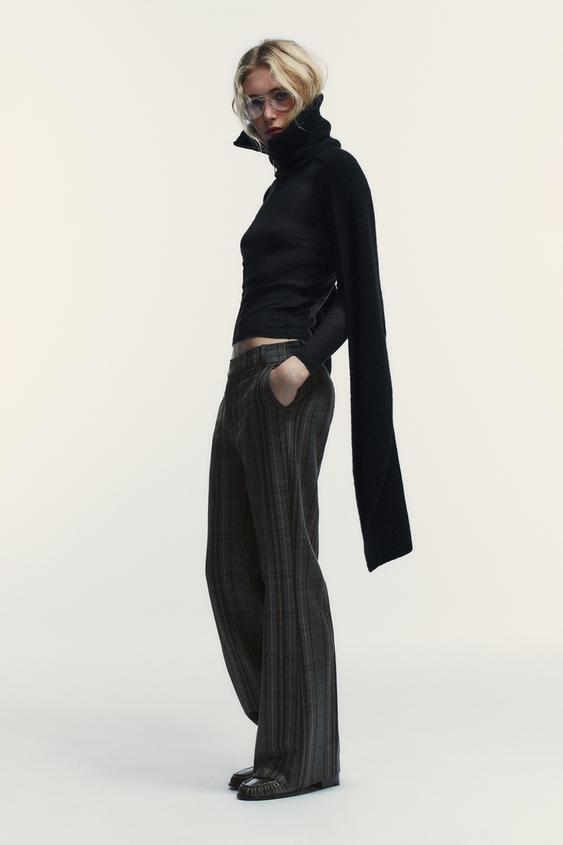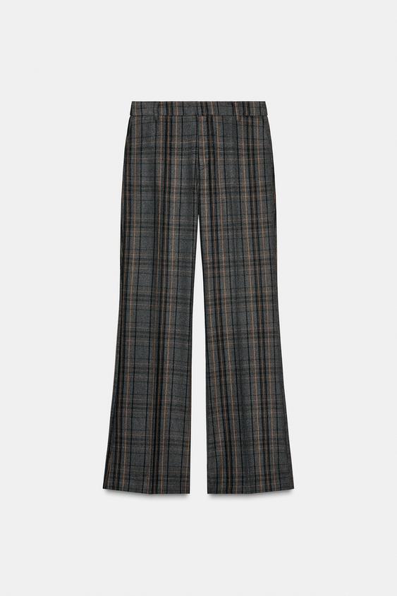 ZARA БРЮКИ В КЛЕТКУ, СЕРЫЙ/НЕЖНО-КОРИЧНЕВЫЙ