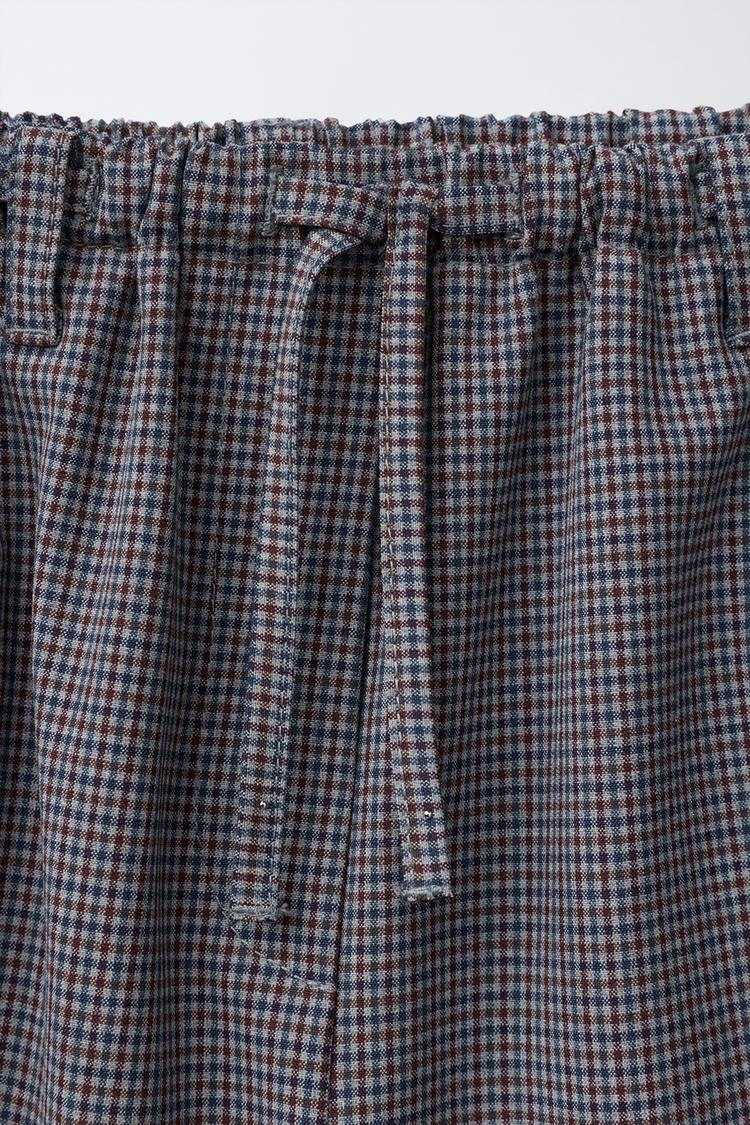 Брюки с эластичным поясом и шнурком спереди. Боковые карманы скрыты в швах. Принт в клетку.