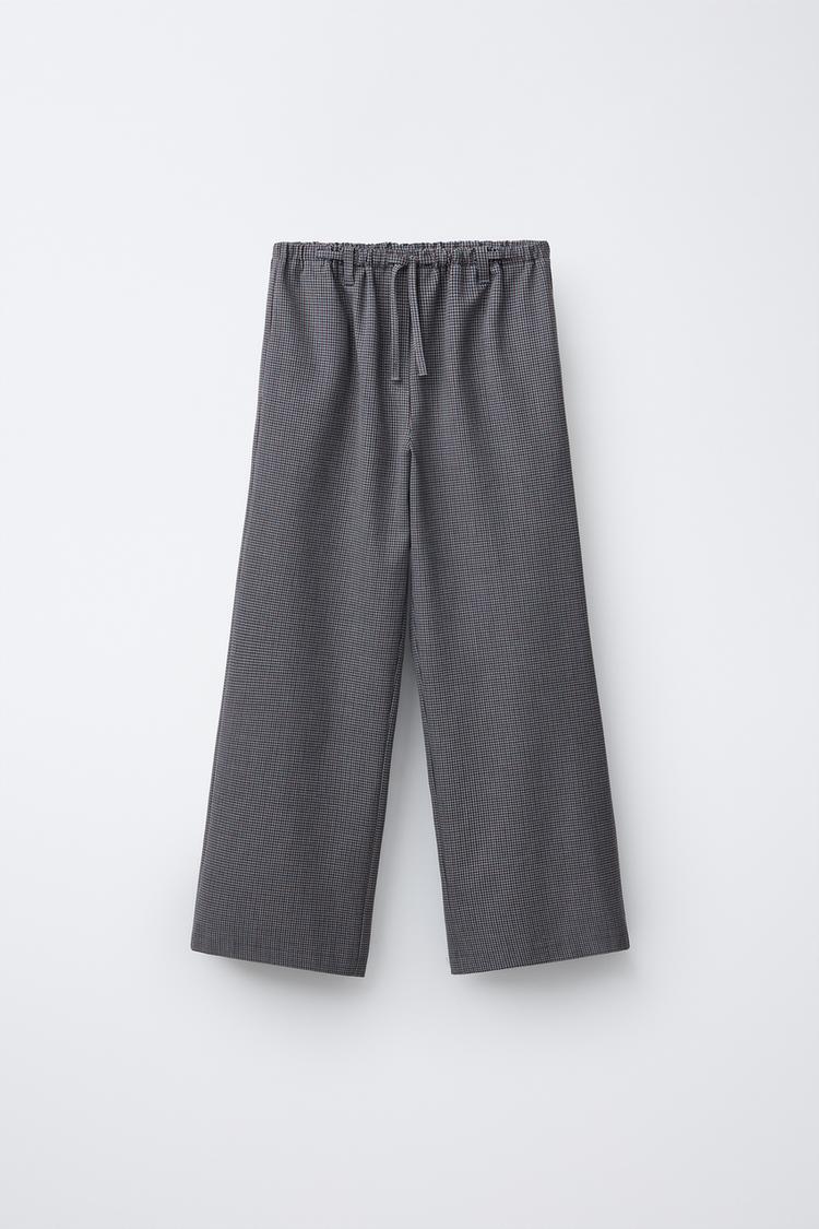 ZARA БРЮКИ В КЛЕТКУ СО ШНУРКОМ, ГРАНАТОВЫЙ
