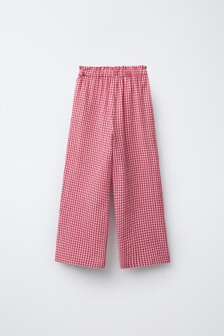 ZARA БРЮКИ В КЛЕТКУ ВИШИ, КРАСНЫЙ