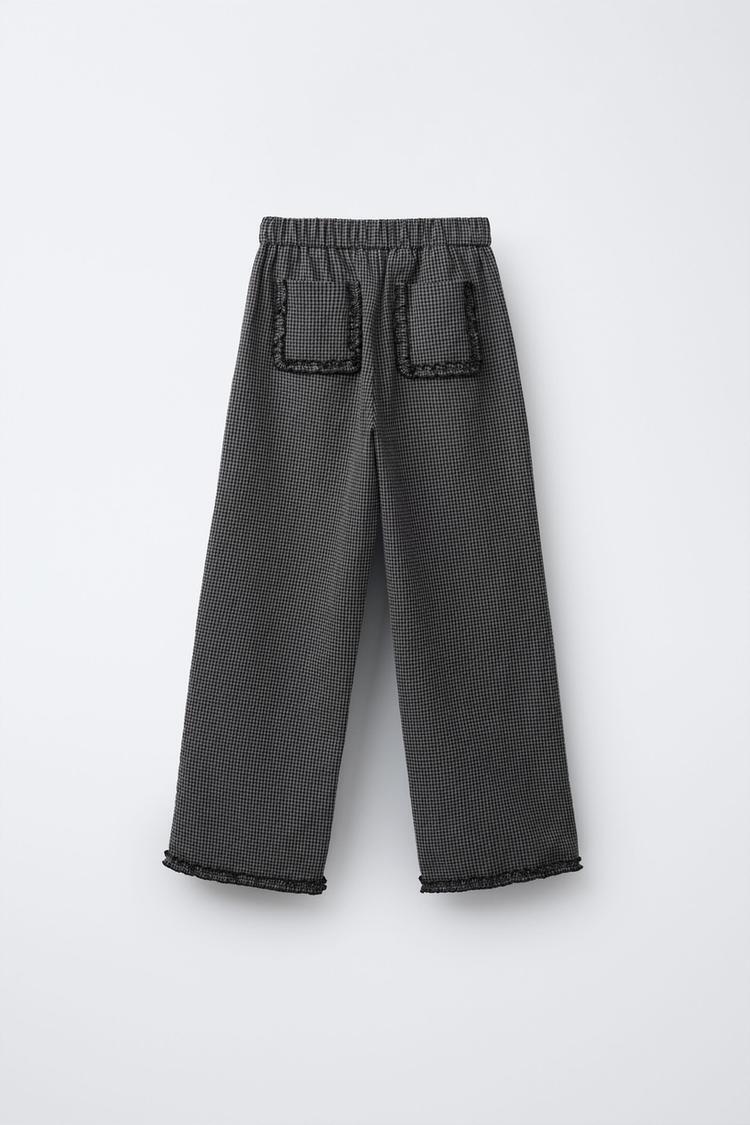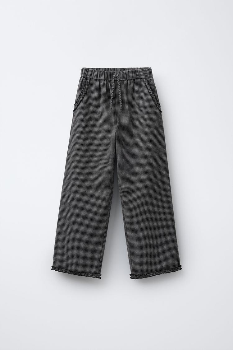 ZARA БРЮКИ В КЛЕТКУ ВИШИ С ВОЛАНАМИ, АНТРАЦИТОВО-СЕРЫЙ
