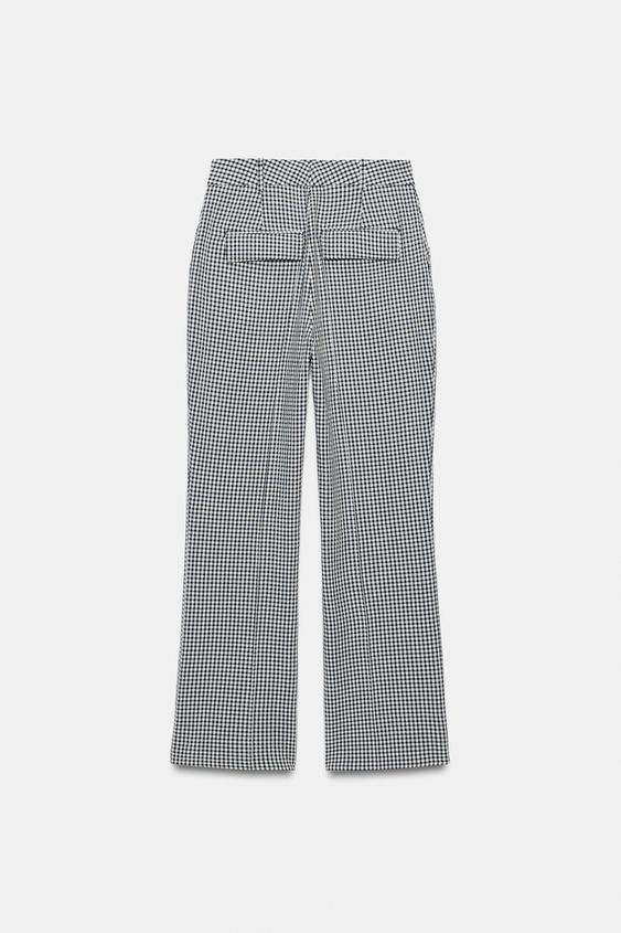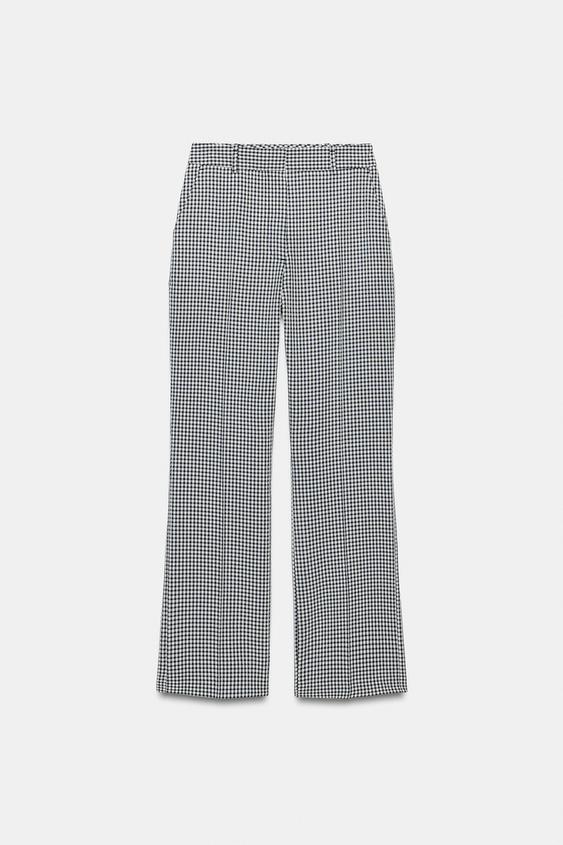 ZARA БРЮКИ В КЛЕТКУ ВИШИ, СИНИЙ/БЕЛЫЙ