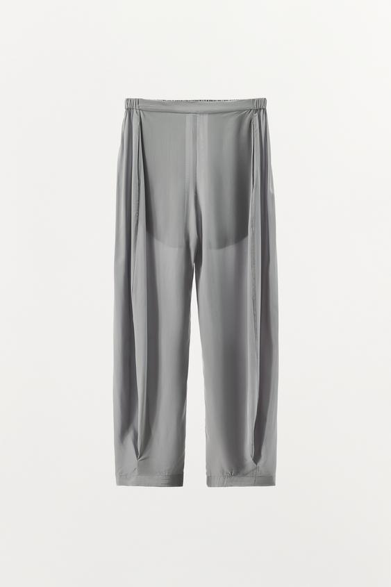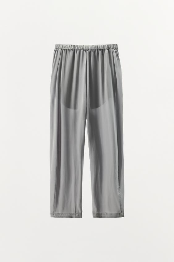 ZARA БРЮКИ В ПИЖАМНОМ СТИЛЕ ИЗ 100% ВИСКОЗЫ, СЕРО-ДЫМЧАТЫЙ