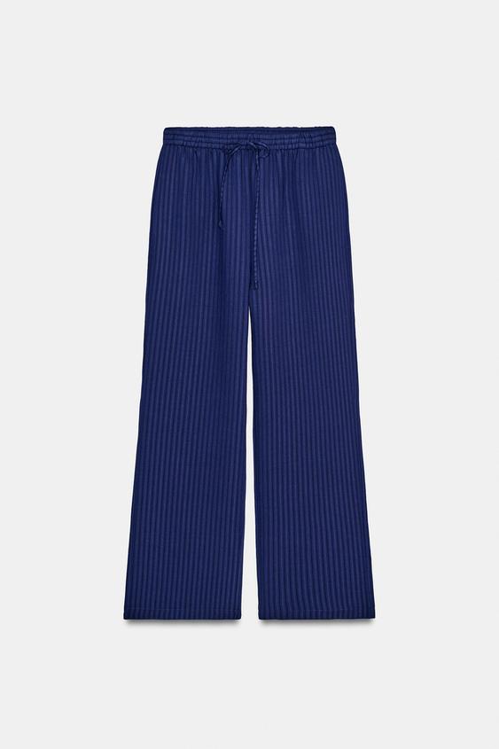 ZARA БРЮКИ В ПИЖАМНОМ СТИЛЕ С ТЕКСТУРОЙ — ZW COLLECTION, МОРСКОЙ СИНИЙ