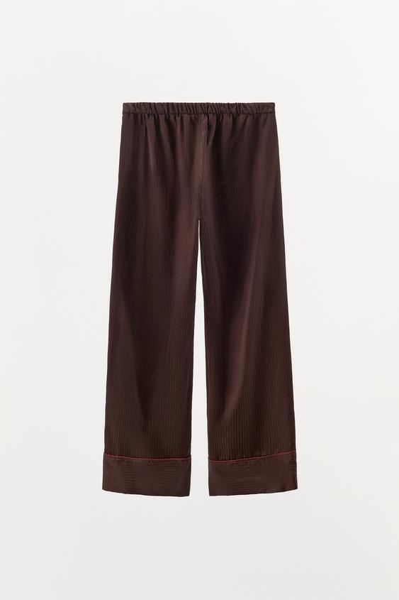 ZARA БРЮКИ В ПИЖАМНОМ СТИЛЕ В КОНТРАСТНУЮ ПОЛОСКУ, КОРИЧНЕВЫЙ