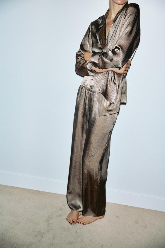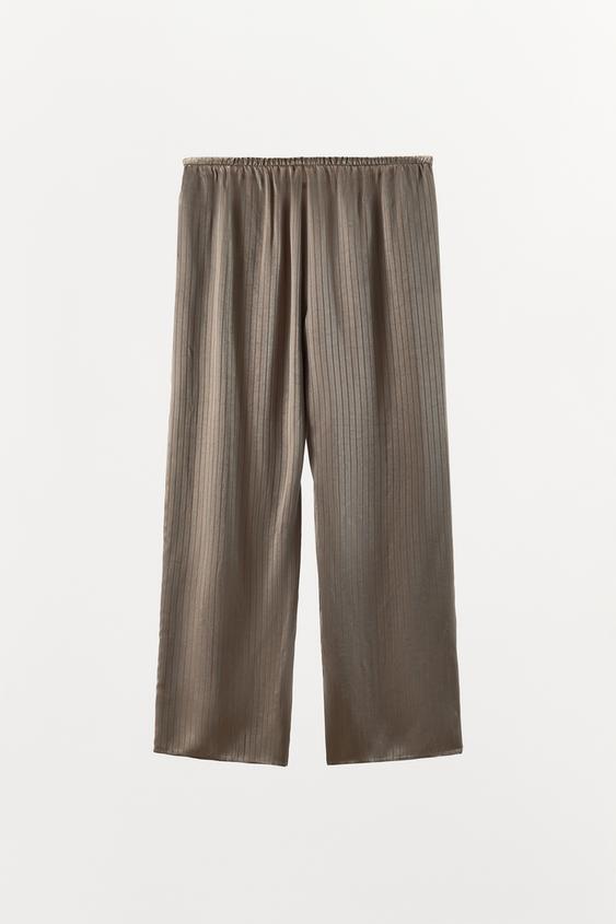 ZARA БРЮКИ В ПИЖАМНОМ СТИЛЕ В ПОЛОСКУ, РЫЖЕВАТО-КОРИЧНЕВЫЙ