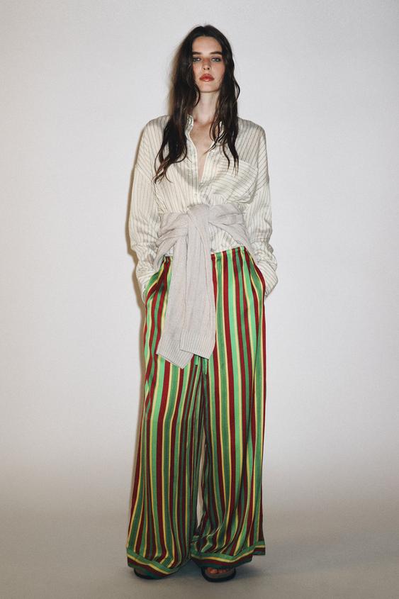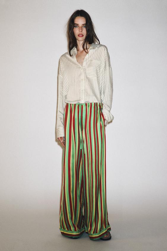 ZARA БРЮКИ В ПИЖАМНОМ СТИЛЕ В ПОЛОСКУ — ZW COLLECTION, РАЗНОЦВЕТНЫЙ