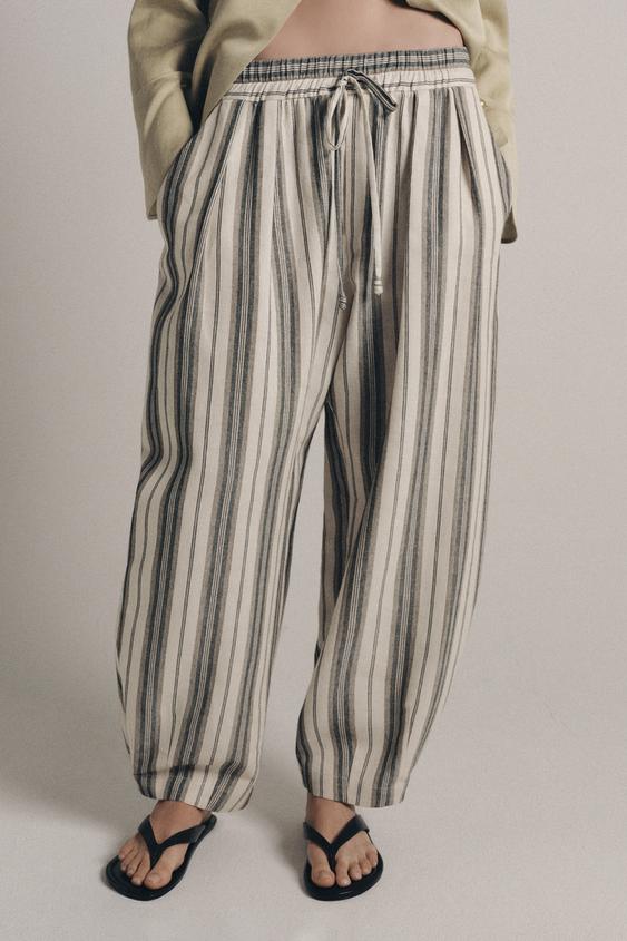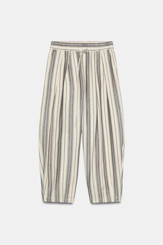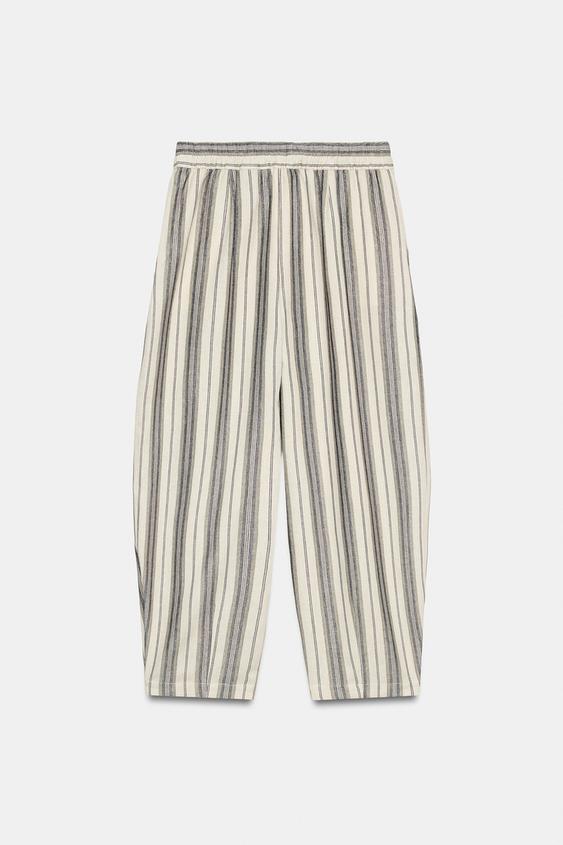 ZARA БРЮКИ В ПОЛОСКУ В ПИЖАМНОМ СТИЛЕ — ZW COLLECTION, ЭКРЮ/ЧЕРНЫЙ