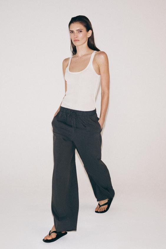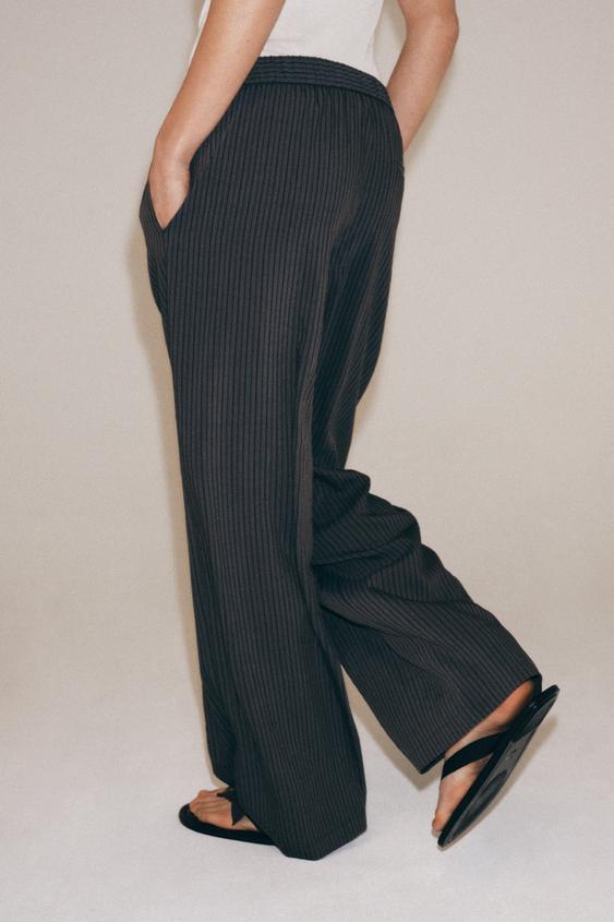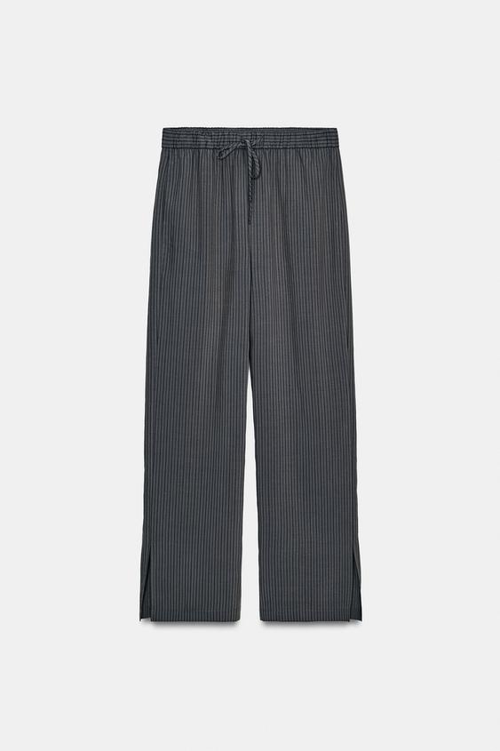 ZARA БРЮКИ В ПОЛОСКУ В ПИЖАМНОМ СТИЛЕ — ZW COLLECTION, СЕРЫЙ