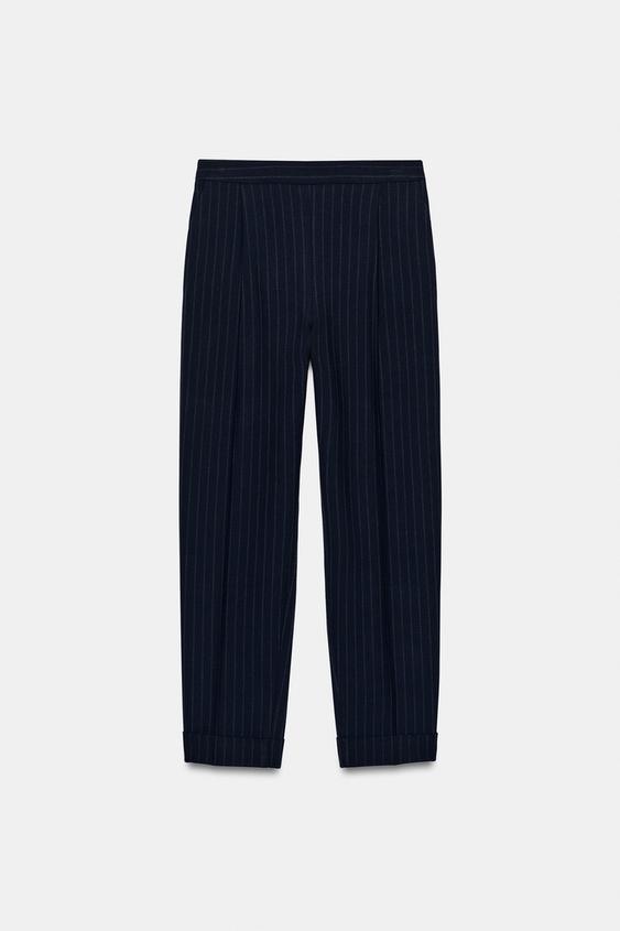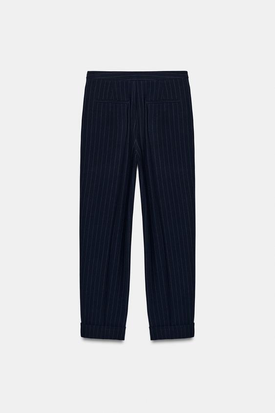ZARA БРЮКИ В ТОНКУЮ ПОЛОСКУ, МОРСКОЙ СИНИЙ