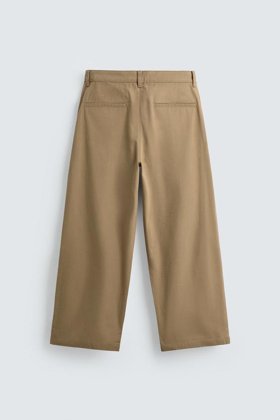 ZARA БРЮКИ WIDE FIT СО СКЛАДКАМИ, БЕЖЕВЫЙ