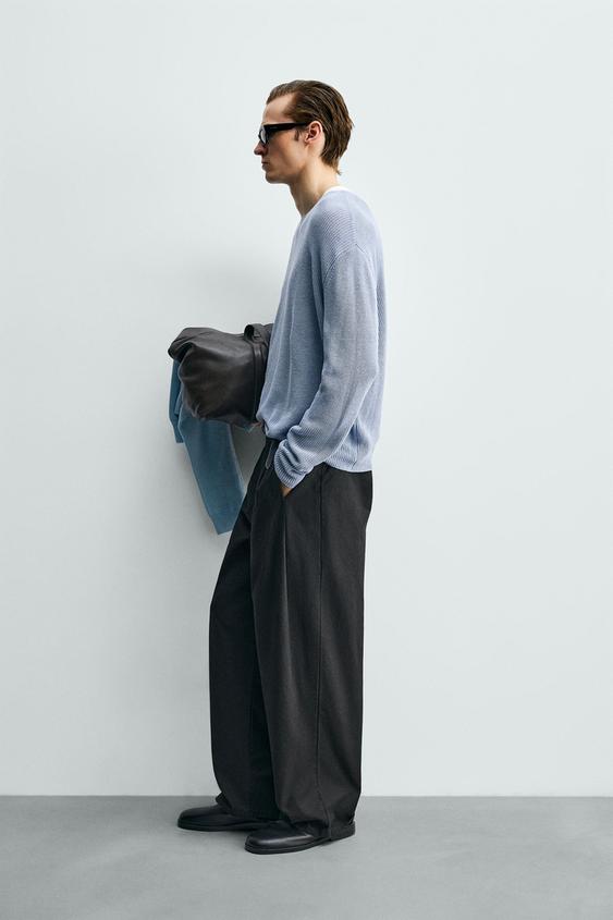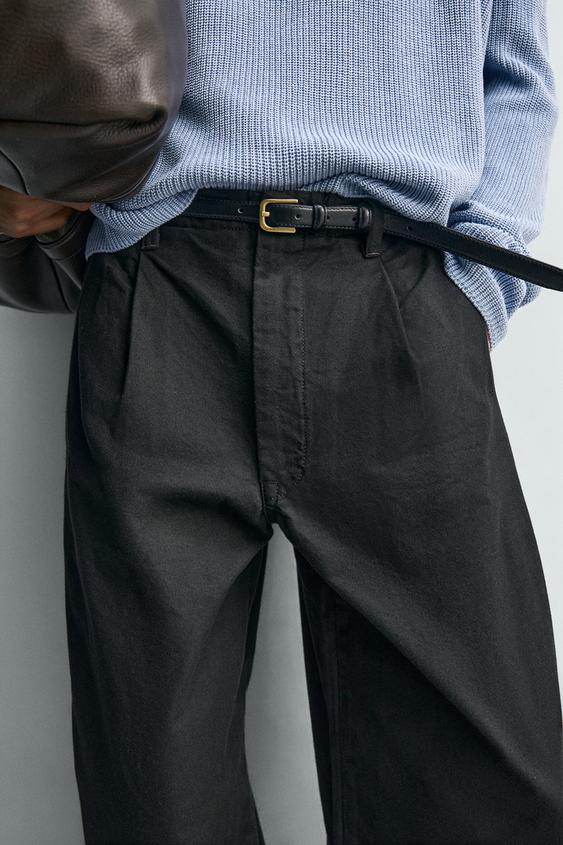 ZARA БРЮКИ WIDE FIT СО СКЛАДКАМИ, КОРИЧНЕВЫЙ